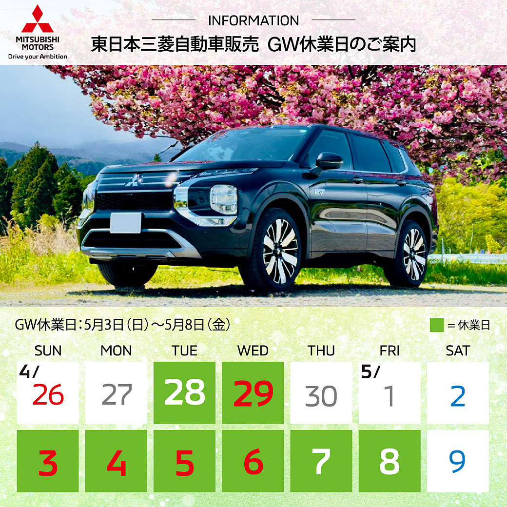 尚、事故・故障等、緊急時のご用命は「東日本三菱自動車販売 安心サポートデスク」をご利用ください。