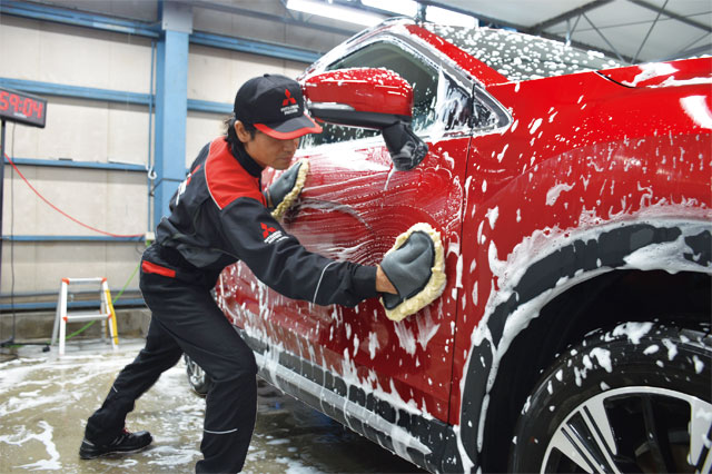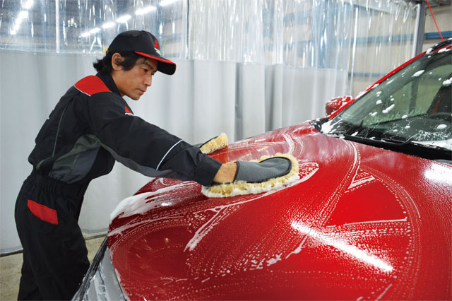 塗装に負担のない洗練された洗車です。 大切な愛車の「キレイ」をお手伝い。シャンプー手洗い洗車は、お車のボディを優しく、細かいところまでキレイに洗います。 洗車オプションの「アンダーウォッシュ」「撥水トリートメント」もオススメです。 |