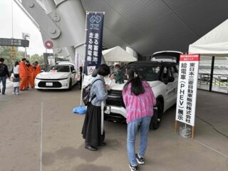 10月11日(土)東日本三菱自動車販売株式会社(以下、東日本三菱)は、東京都調布市味の素スタジアムで開催された令和7年度調布市総合防災訓練・防災フェアに、給電車(アウトランダーPHEV)給電デモで参加しました。