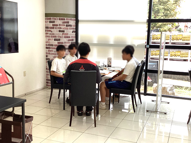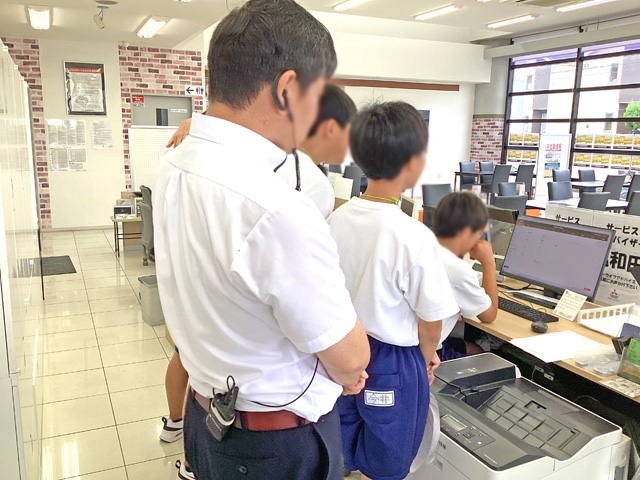 ショールームでは実際に新車のお見積書を作成していただき、また、サービス工場では作業の見学や洗車のお手伝いをしていただきました。