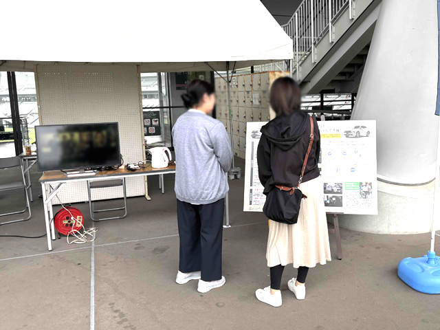 当日は、あいにくの天候にも関わらず、多くの訓練参加者も興味を持ってブースに立ち寄って下さり、給電の仕組みやPHEVの構造に関して共有する場にもなりました。
