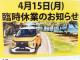 4月15日(月)臨時休業のお知らせ。