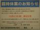 臨時休業の知らせ